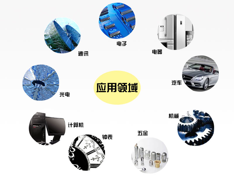 本公司产品应用于钟表、计算机、光电、通讯、电子、电器、汽车、机械、五金等领域。